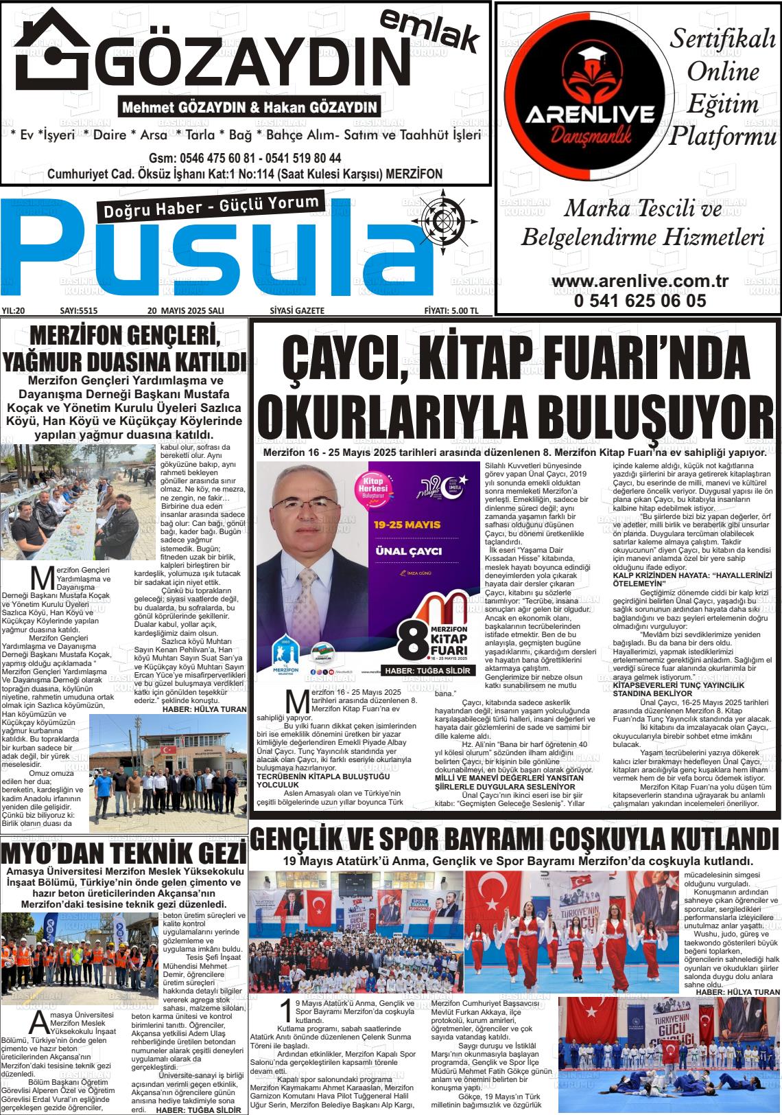 Amasya Yerel Gazeteleri 14 Ekim 2025, Salı Günü Manşeti