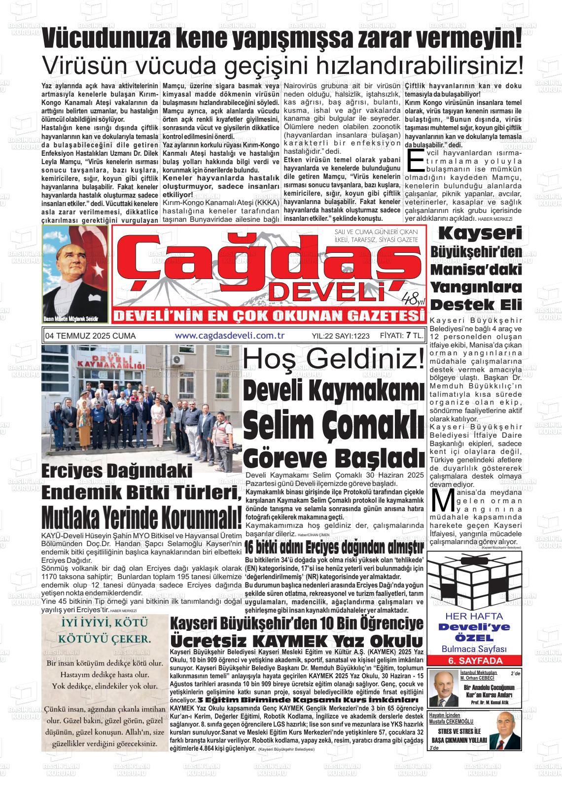 Kayserİ Yerel Gazeteleri 02 Ekim 2025, Perşembe Günü Manşeti