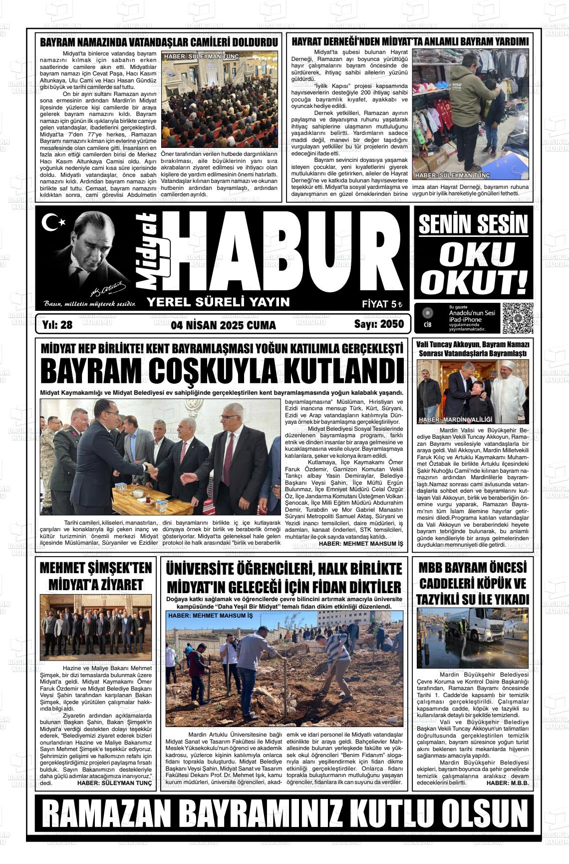 Mardİn Yerel Gazeteleri 02 Ekim 2025, Perşembe Günü Manşeti