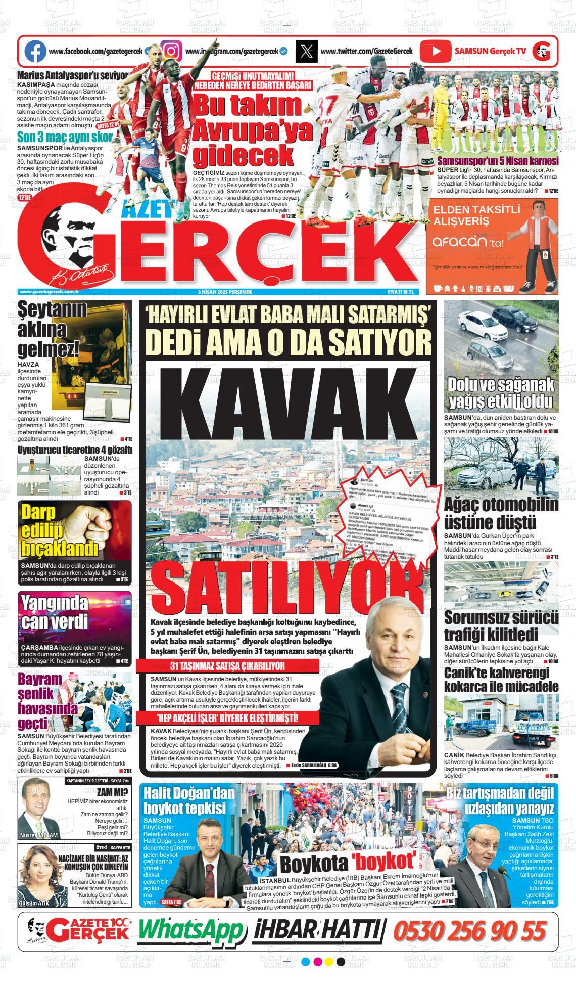 Samsun Yerel Gazeteleri 08 Aralık 2025, Pazartesi Günü Manşeti