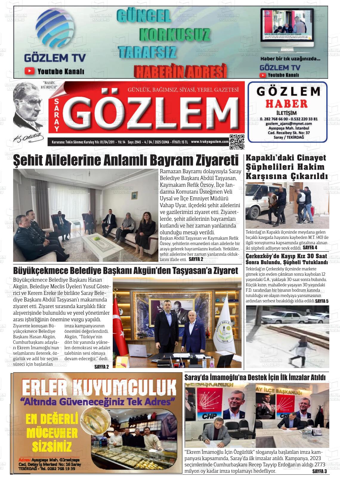 Tekİrdağ Yerel Gazeteleri 14 Ekim 2025, Salı Günü Manşeti